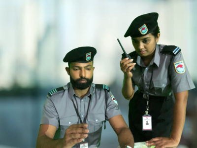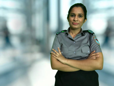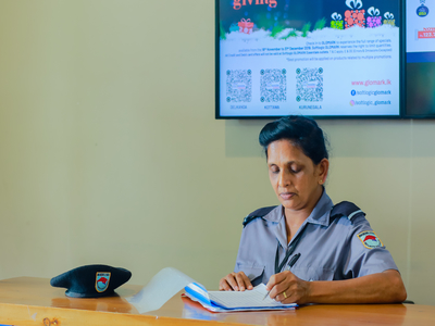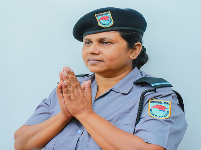 Lady security officer is on duty at the Softlogic Glomark supermarket